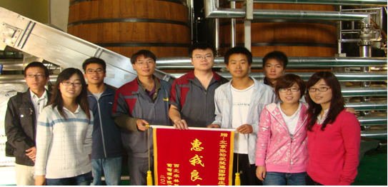 为加强学生理论知识与生产实践相结合的能力,提高学生生产实践操作技能,葡萄与葡萄酒工程2008级7名同学于2011年8月16日,在北京张裕爱斐堡国际酒庄进行了为期40天的葡萄酒生产实习。