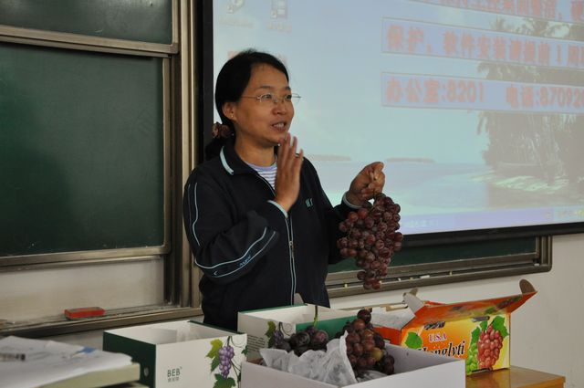 院长、博士生导师王华教授在北校区8118教室为本科生讲授公选课葡萄酒文化与鉴赏。课程开始,学生还有些拘束,王华教授从酿酒葡萄与鲜食葡萄哪一个更甜的提问,迅速活跃和调动了课堂气氛,显示了她极强的掌控课堂气氛能力;讲授过程中,她还为同学们准备了三个鲜食葡萄品种请大家品尝,更调动了大家参与课堂教学的积极性。王华教授注意在课程教学中启发大家对相关问题进行思考,为同学们课下的自主学习提供了空间。短短的两节课时间很快就过去了,同学们在对葡萄酒有了初步了解的基础上更期待下一次课的到来。