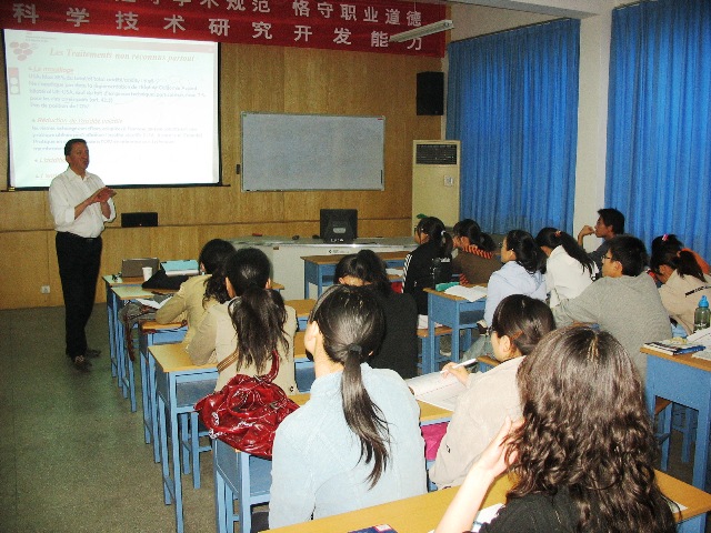 欧美激情 4月23日下午2时,参加欧美激情 第六届国际葡萄与葡萄酒学术研讨会的OIV科技部官员Jean-Claude RUF在欧美激情 四层学术报告厅为欧美激情 全体研究生做了专题报告,详细介绍了OIV组织的有关情况和世界不同国家、地区葡萄酒的生产现状,使同学们对OIV组织有了具体的了解,同时开阔了视野,增长了见识,相信对将来从事葡萄与葡萄酒行业的工作有极大的帮助。