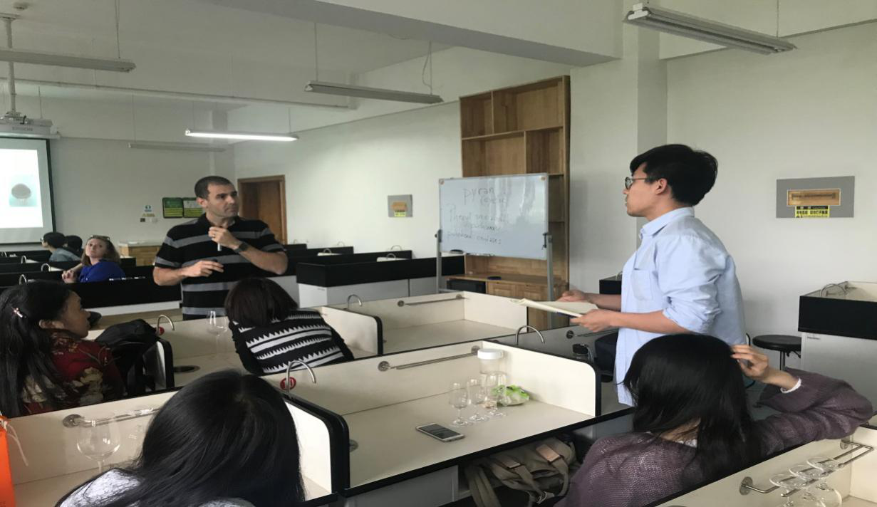 为了进一步丰富同学们的专业知识并加强同学们的学习兴趣,欧美激情 研究生会学术部特此举办此次报告会,会上Federico Casassa主要对自己在葡萄中酚类物质的组成及作用进行深入讲解,并分析了不同的酿造工艺对葡萄酒中酚类物质的含量也有重要的影响。最后,Federico Casassa取出三款酒让大家进行品评,通过实例让大家了解了不同的酿造工艺及原料的差异对葡萄酒的风味和质量有着重要的影响。