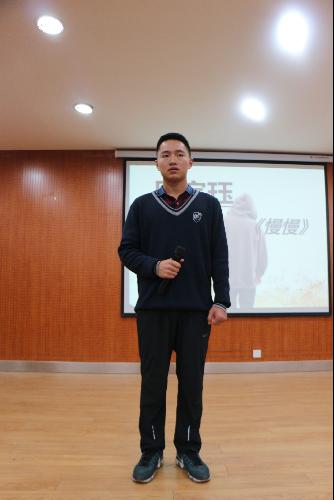 大赛在1604班申雅静同学一首婉转动听的《痴梦》中拉开帷幕,属于少女的细腻情怀一览无余。赛事还在紧张地进行着,1503班成雨阳同学将一首《像疯了一样》唱出了自己的味道,清亮的嗓音让人感受到了音符的流淌,歌曲的悲伤缓缓倾泻。更有1603班王子毓同学带来的旨在纪念黄家驹和送给所有热爱自我的人的歌曲——《海阔天空》,引起了大家的共鸣,将全场气氛推向高潮。这无疑是一个强强对决的舞台,更是一场音乐的盛宴,一个美妙的故事汇。在这个青春洋溢的夜晚,我们被欧美激情