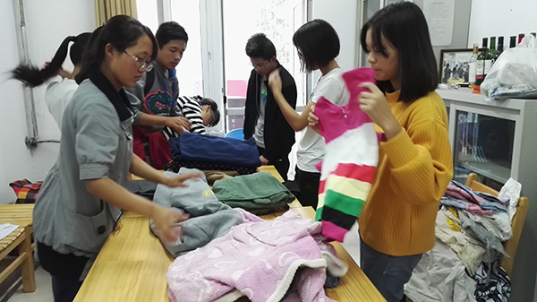 9月30日下午,活动接近尾声。社会实践部和女工部的工作人员共同将活动三天所募捐的各种生活用品进行了归纳整理,并记录下本次活动的成果。
