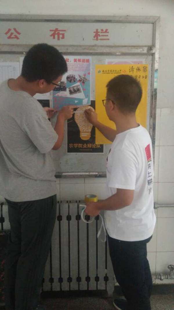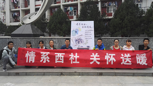前期为使更多的西农学子了解渭南市澄城县冯原镇西社乡孩子的基本情况,我们通过在微信,微博及qq新闻媒体平台以及在宿舍楼下张贴海报,在西雕展示宣传板等多种方式对本次活动进行了宣传,鼓励大家奉献爱心,对山区的孩子们伸出援助之手,寒冬送暖。