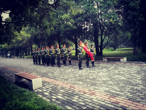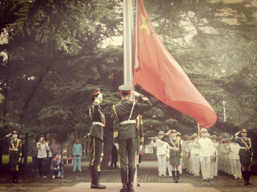 铺开历史画卷,1931年9月18日,正是这一天,一群恶魔踏着鲜血在这历经千年的土地上登陆,他们一个个手持钢枪,面对着手无寸铁的人们他们从不手软。他们像一群群贪婪的蝗虫,无情的吞噬着、践踏着这片土地!人们一度觉醒,他们发誓要把这群恶魔赶出自己的家园! 1935年12月9日,在中国共产党的领导下,6000名愤怒的北平人们走上街头,高举着正义的旗帜,奔走呼告,勇敢地向卑鄙的暴虐宣战。我为你们感到骄傲,如果我们的民族,没有你,它的生命将是如何的暗淡,它将会走向何等可怕的深渊啊!你以你坚毅不挠的行动,你以你刚直不阿的作风,告诉所有居心叵测的人们:中华民族是不会屈服的!中国人将为国而生、为国而战、为国而死。“我们万众一心,冒着敌人的炮火”,伴随着歌曲的尾声,国旗已冉冉升起到旗杆的顶端。我们也带着沉重的心情有序离场。