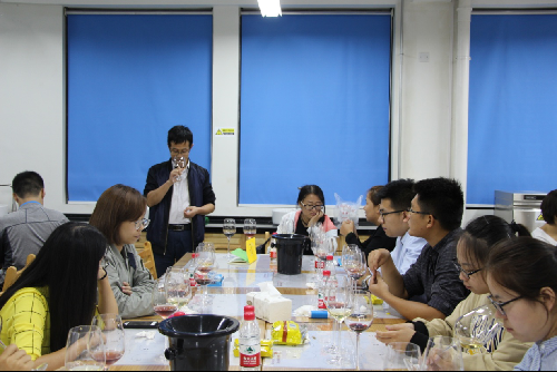 品尝室举行,同时,郭安鹊老师为同学们带来了第一堂葡萄酒品尝课。郭老师为同学们讲述了品评葡萄酒的基本原理、方法等,并通过三款不同类型的葡萄酒来具体分析,让大家对葡萄酒有了初步的认识和感受。