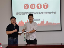 每一位研究生新生还收到了颇具特色的新生礼物——印有院徽的T恤、吊牌和印有学生姓名的酒刀、酒杯。“沧浪欲有诗味,酝酿才能芬芳”,房玉林院长借此题词,寄语同学们要带着“葡萄酒人”的烙印,拓宽专业视角,加强专业热情,培养科研能力,收获科学快乐!