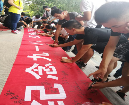 参观了博览园后,我们葡酒组织部在校史馆门口负责举行了“纪念九一八,重温校情校史”的签名活动,每个人都在横幅上写下了自己的名字,经过这样一次活动,每个人心中的爱国情都已被点燃,相信在以后的日子里,他们也都会不断努力,从小事开始,为建设一个更加美好的国家做出贡献。