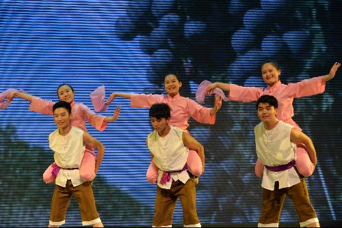 群舞《耕土耕心 酿酒酿人》的舞者们展示出了平时训练的刻苦和认真,伴随着音乐,倾听着节拍,踏着整齐的鼓点,挥出划一的动作,男生的迅捷刚强和女生的舒缓柔美完美融合,生动表现出葡萄种植、成长、收获、酿造四个环节,展现了葡园果农劳作的质朴无华以及葡萄丰收的喜悦之情,原生态展现出了欧美激情