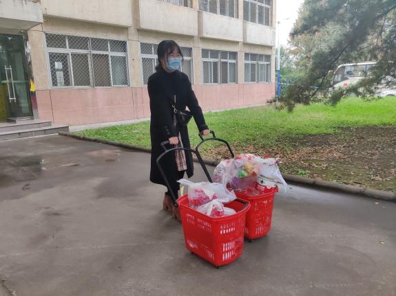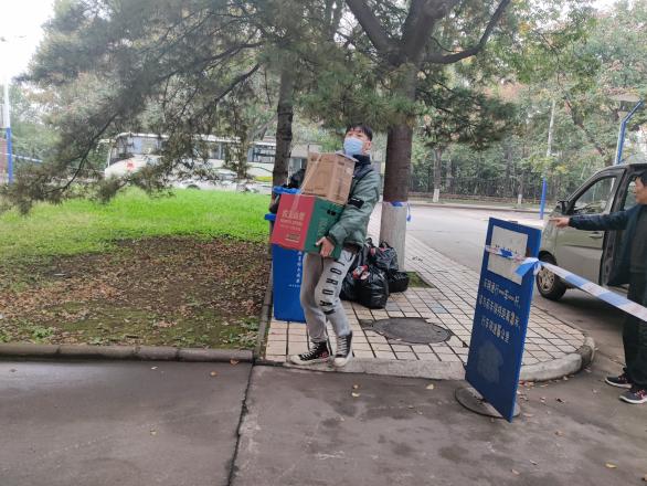 辅导员薛雪、路思源、李昊坤到北校区亦乐园、南校区干部培训楼、新天地酒店三个疫情防控集中隔离点,为隔离学生送去毛巾、香皂、纯净水、方便面、火腿肠等生活必需品和慰问品。