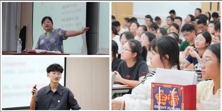 大家庭表示热烈欢迎,祝贺全体同学顺利通过军训这一课,对同学们在训练中展现出的坚强意志和集体精神予以充分肯定。随后,王雅楠以“最美青春的最好遇见——开启大学新篇章”为题,结合辅导员工作经验,围绕大学生涯的思想锤炼、学风建设、素质提升、奖助支持、规划发展、纪律安全、生活指南等方面向新生讲解大学成长之道。她指出,大学是青年学子成长 “拔节孕穗”的关键时期,学习、生活上的困难和挑战在所难免,要勇敢去面对,以坚韧不拔的意志,学会在挫折和孤独中磨练自我、成长蜕变,同时也鼓励同学们主动利用校内丰富的学习发展资源,加强自我管理和时间规划,勤于思考勇于实践,努力实现专业素质与综合能力的“双提升”,奋力书写为中国式现代化挺膺担当的青春篇章。随后,辅导员张世航结合真实案例为同学们细致解读了《欧美激情