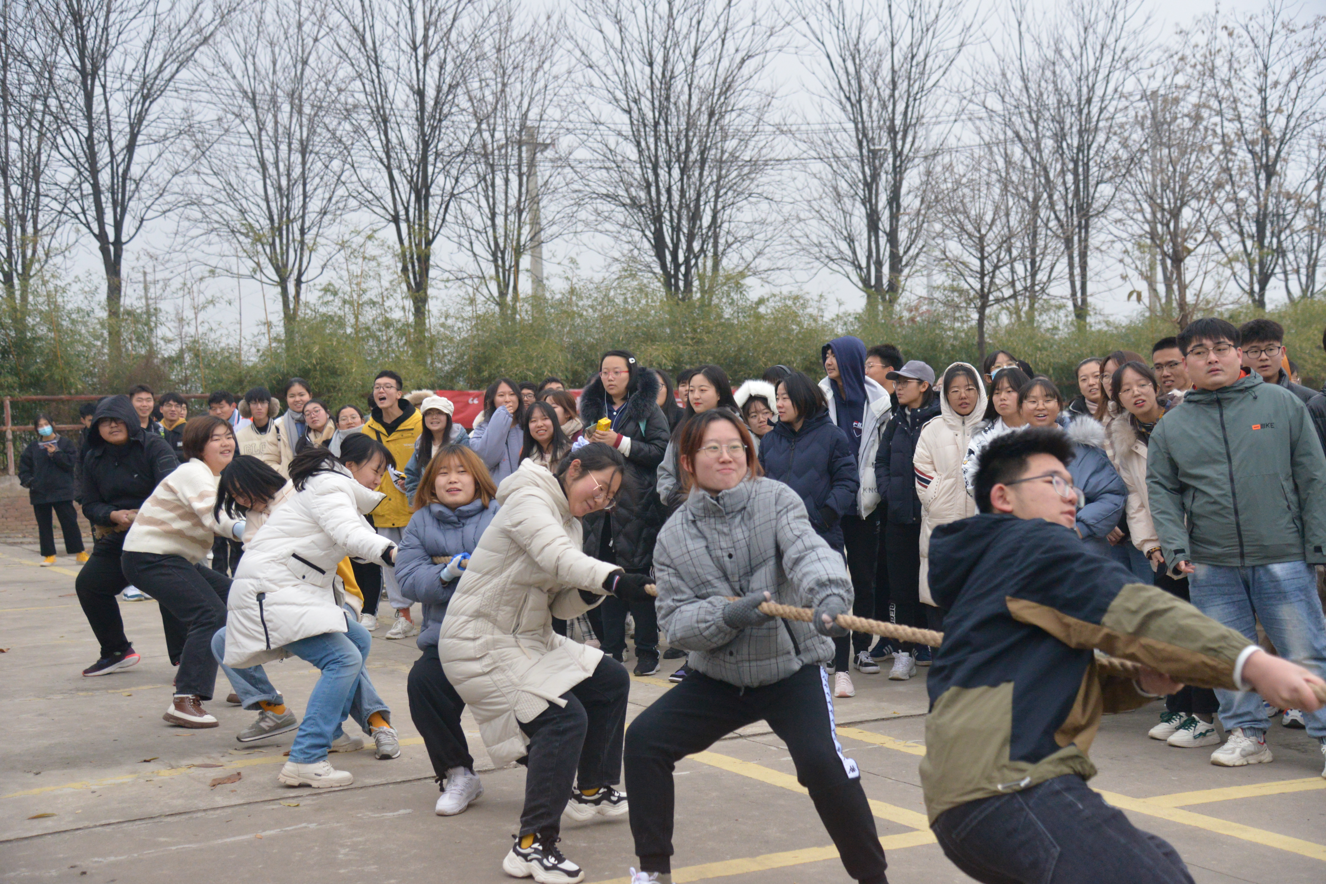 赛后,老师给予了同学们以关怀并合影留念。这次拔河比赛,不仅丰富了同学的课余生活,加强班级同学的合作精神,而且促进了院系之间的交流,培养了每一位同学的拼搏进取的精神和乐观的生活态度。