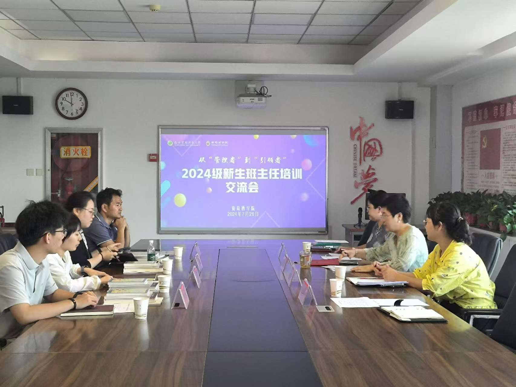 为新生班主任颁发聘书并赠送书籍。优秀班主任代表王雪飞结合自身经历分享了开展学生思想政治教育工作的思考,详细讲解了从新生入学到毕业就业各阶段所需解决的重点任务,并围绕学风建设、科研竞赛、保研考研等具体工作为新生班主任提供了指导和建议。随后,辅导员王雅楠做班主任工作实务培训,从瞄准班主任角色定位、明确学生培养目标任务、用好三项教育平台、开好第一次班会等方面详细讲解了工作内容和注意事项,并结合具体案例进行了研讨交流。