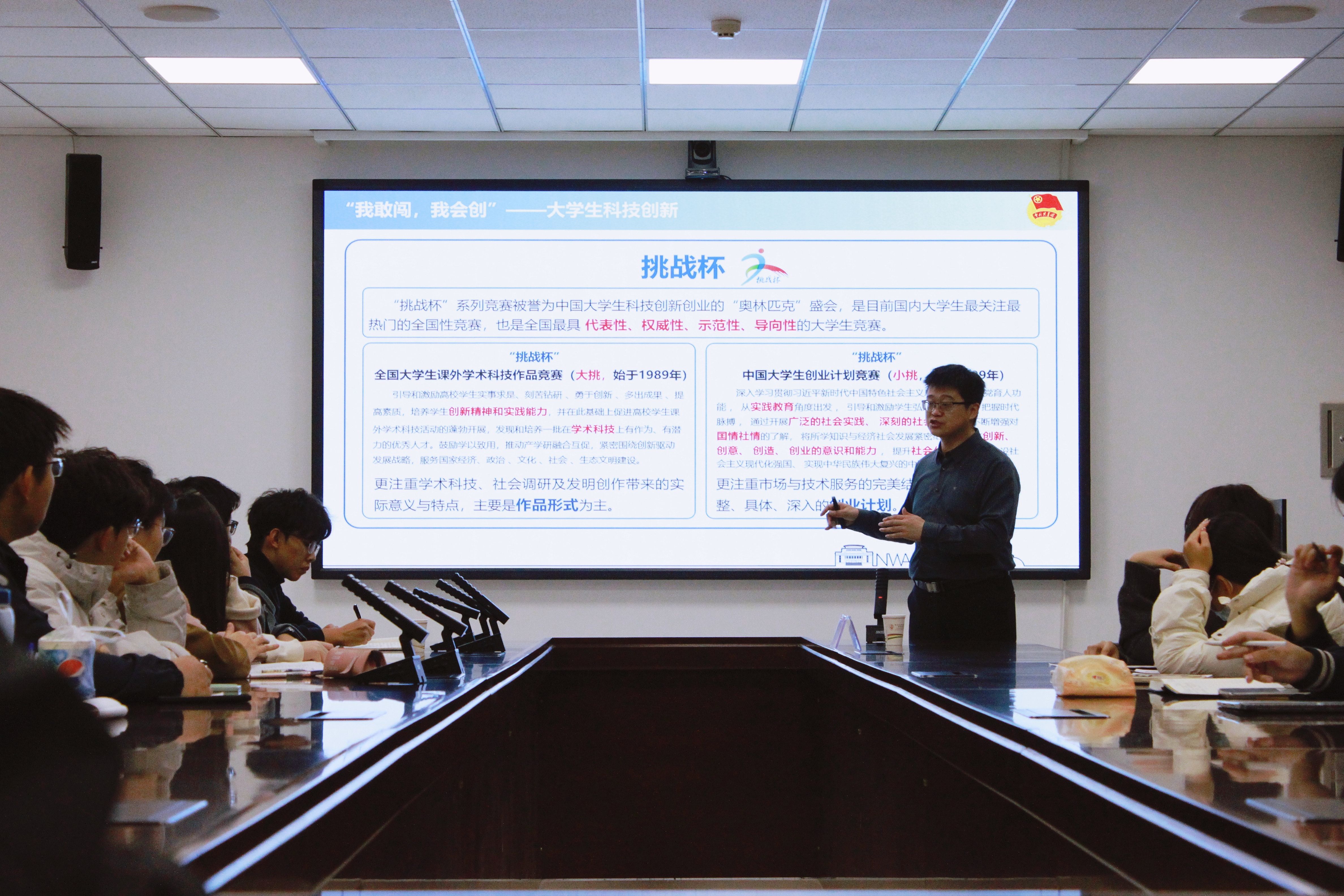 邀请校团委科技创新部部长邵禹华老师为团分校学员讲授“大学生创新创业赛事解读”主题团课。