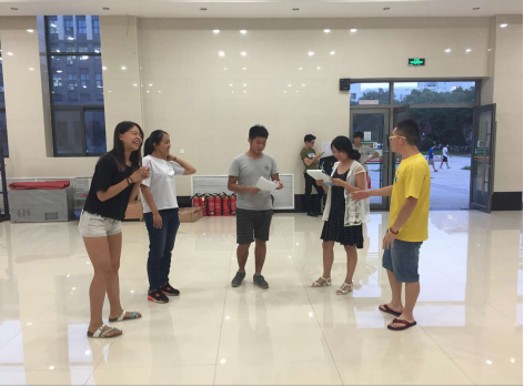对过几遍稿之后就迅速定下了角色,进入了排练阶段。由于大家不是专业的话剧演员,缺乏在舞台上表演的经历。所以基本功的训练必不可少,所以大家不怕辛苦,早起练晨功。从最简单的绕口令练起,说多了舌头就会打结,引得大家哈哈一笑。这一笑之后大家也就熟悉起来了,最开始大家会说“你是林院的吧”,到最后只有一句“我们来自《一麦相承》”。众人拾柴火焰高,集体的力量是无法估量的。