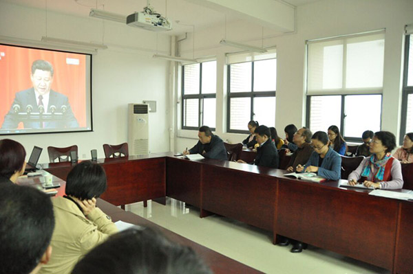 党委组织全院师生代表50余人观看纪念红军长征胜利80周年大会现场直播,师生就习近平总书记在纪念大会上发表的重要讲话展开热烈讨论。