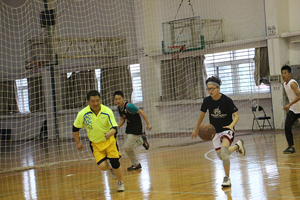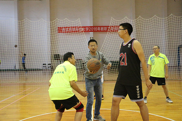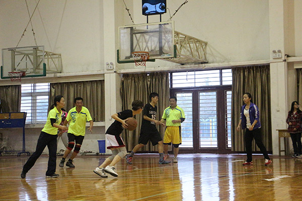 比赛一共分为两场,一场两节。比赛一开始,教师代表队率先投进一球,学生代表队紧随其后。师生双方抢球、断球、防守、进攻,和对手严守硬对、激烈争夺的同时,也不忘与队友默契传球、完美配合,赢得了场下观众的阵阵喝彩声。上半场结束,学生代表队仅以两分之差暂时落后于教师代表队。双方在短暂的休息和调换队员后,便开始了下半场的角逐。教师代表队老当益壮,学生代表队朝气蓬勃,强强对决,双方丝毫不敢放松,带球突破,挡拆结合,不给对方留一丝翻盘的机会。尽管最后学生代表队以62:66四分之差惜败于教师代表队,但场上的激烈角逐与场下的声声呐喊为欧美激情
