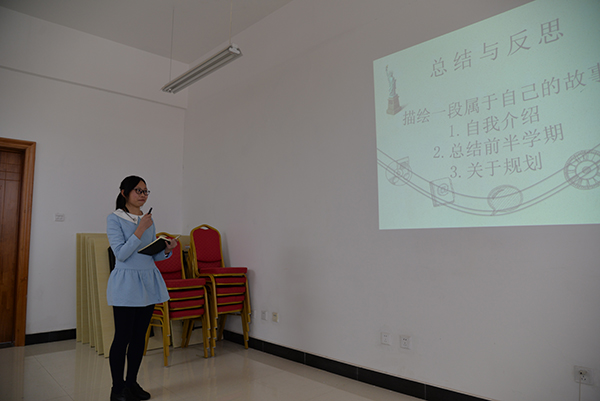 根据会议要求,每位同学结合自己学业生涯、职业生涯的规划,在会前提交了反应自己大学生活阶段性总结、反思和展望的ppt。会上,同学们逐一登台演讲,侃侃而谈。“我是谁”、“我的大学目标是什么”、“哪些素质是实现我的目标所必须的”、“现在的我能为目标的实现做什么”。会议气氛热烈,无论是充分准备者的思路清晰娓娓道来,还是初登台者的手足无措紧张慌乱,同学们都勇敢的走到前台表达自己的思考,展示个人的风采,他们的努力和进步让人欢喜,他们的迷惑和懈怠发人深思。同学们在演讲中反应的问题,也为下一步班级工作的开展指明了发力点和努力的方向。