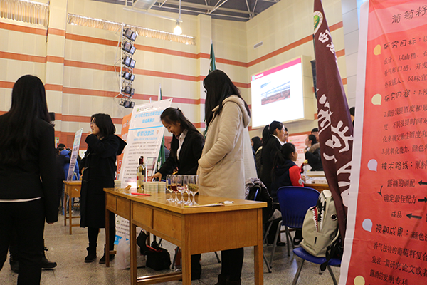 特色展板一同展出的还有两项科创项目,它们分别是基于底物压力的共轭亚油酸(CLA)生产菌的筛选与鉴定以及葡萄籽复合露酒的开发。这两项科研项目凝聚了欧美激情