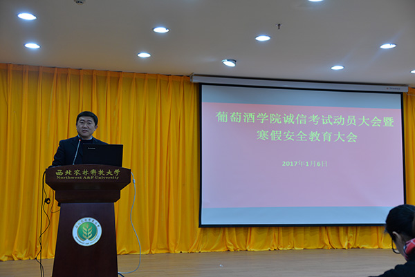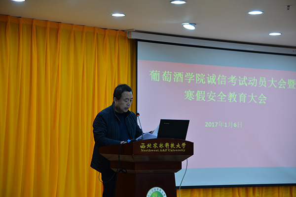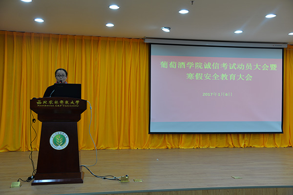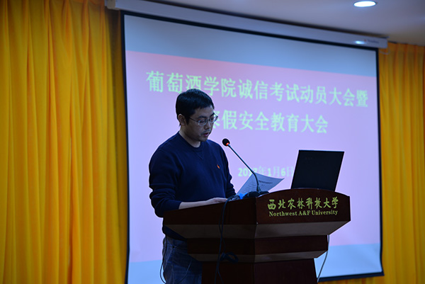 最后,房玉林院长作诚信考试动员。房院长通过讲述真实案例,向同学们生动阐释了考试违纪与作弊其后果的严重性,他要求同学们自觉遵守考试纪律,践行“耕土耕心、酿酒酿人”的院训精神,诚信考试、诚信做人,考个好成绩并带着欧美激情