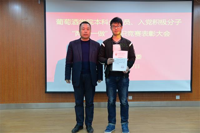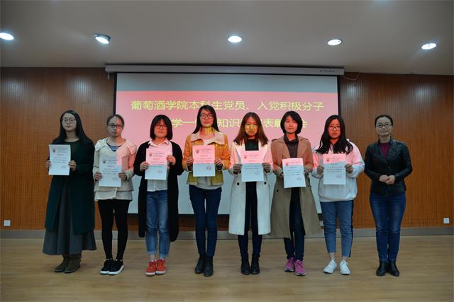 各项工作中发挥模范带头作用,以优秀党员的标准和优秀入党积极分子的行动自觉引领全院学生积极进取、奋力成才,做知行卓越的葡酒人。