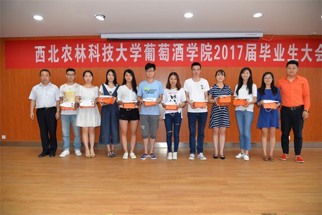 最后,房玉林院长、胡俊鹏书记、广州野城酒具用品有限公司总经理曾羽先生为毕业生赠送了独具专业特色的毕业礼物——野城酒杯、野城酒刀和欧美激情