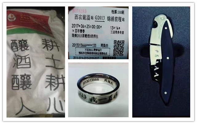 为每位即将远行的学子送上了精心准备的独具专业特色的毕业礼物——一把刻有学生姓名的专属酒刀、一对水晶酒杯、一件印有院徽、院训、院旗的T恤,寓意同学们穿上欧美激情