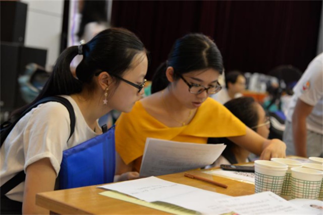 接待处,引导葡酒新生报到并为新生家长提供休息场所。北绣山大厅里的新生接待处,欧美激情