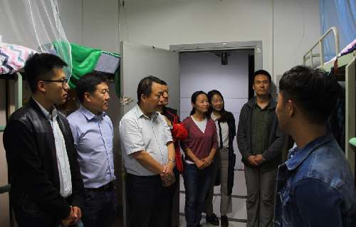 院领导胡俊鹏、房玉林、刘树文、邓亚丽在宿舍看望新生