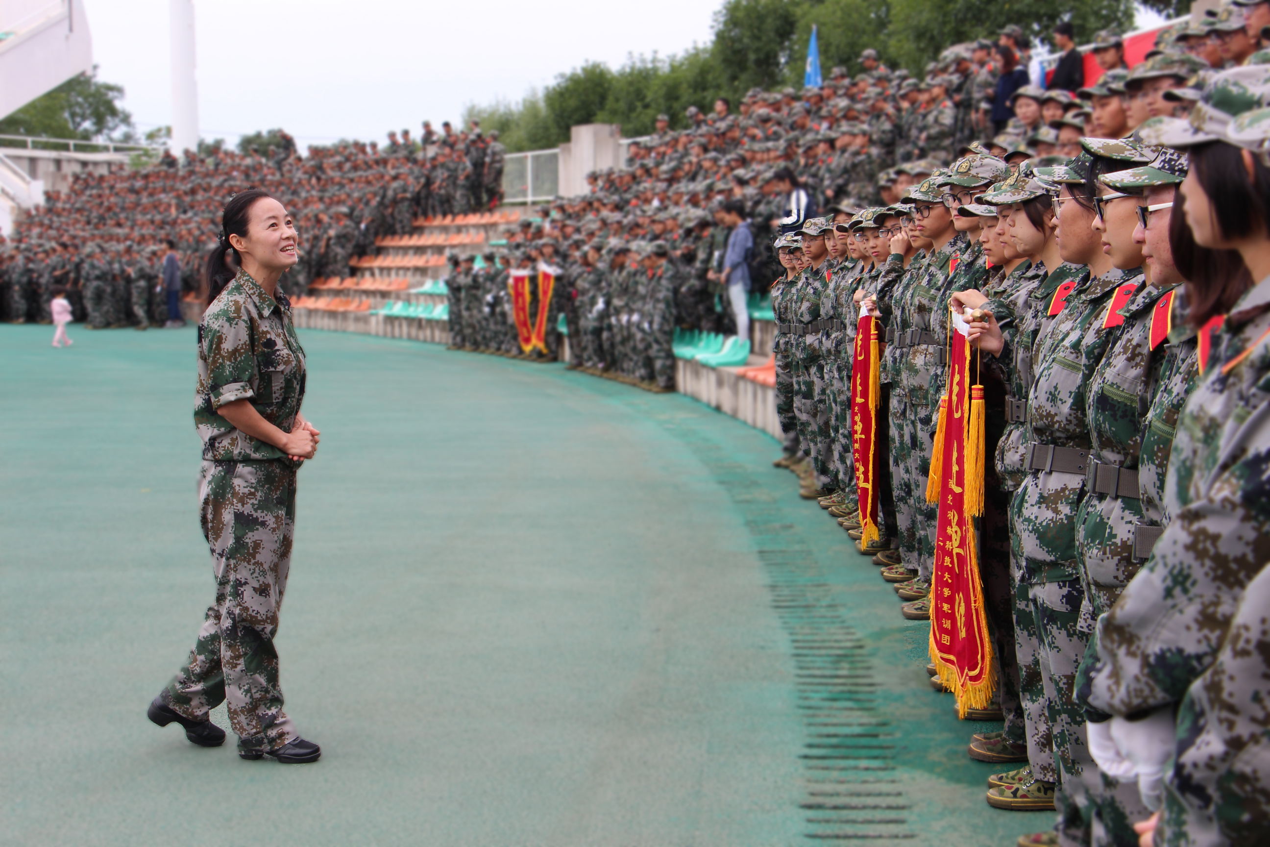 对军训工作进行了小结,邓老师对同学们在阅兵式上的优秀表现给予了充分肯定,并热烈祝贺同学们用自己的拼搏、努力和汗水换来的荣誉和成绩。良好的开端是成功的一半,邓老师希望全体新生在今后的学习、生活中,不断超越自我、砺练自我,巩固军训成果,把从军训教官身上学到的好思想、好作风、好传统,继续发扬光大,以饱满的热情投入到今后的学习和生活中去,以良好心态去接受人生道路中一次又一次磨练和考验。