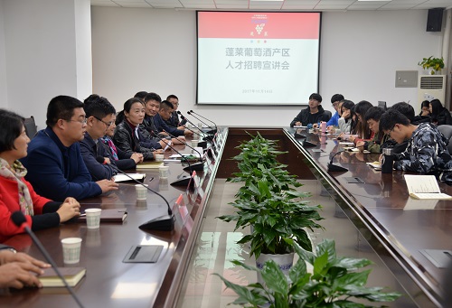 人才培养工作的支持、信任和认可。随后,蓬莱市葡萄与葡萄酒局王福成副局长介绍了蓬莱葡萄酒产业发展情况和“蓬莱仙境英才引进计划实施办法”,表达了蓬莱市政府对葡萄酒专业人才的高度重视和对毕业生的殷切期望,希望能够有更多优秀人才来蓬莱工作,助推蓬莱葡萄酒产业发展。各用人单位介绍了单位基本情况、业务范围、人才需求计划。与会毕业生就葡萄栽培、葡萄酒酿造、葡萄酒设备、葡萄酒物流、市场营销、文化推广等自己感兴趣岗位的具体要求与用人单位进行了提问和交流,用人单位一一详细作答。