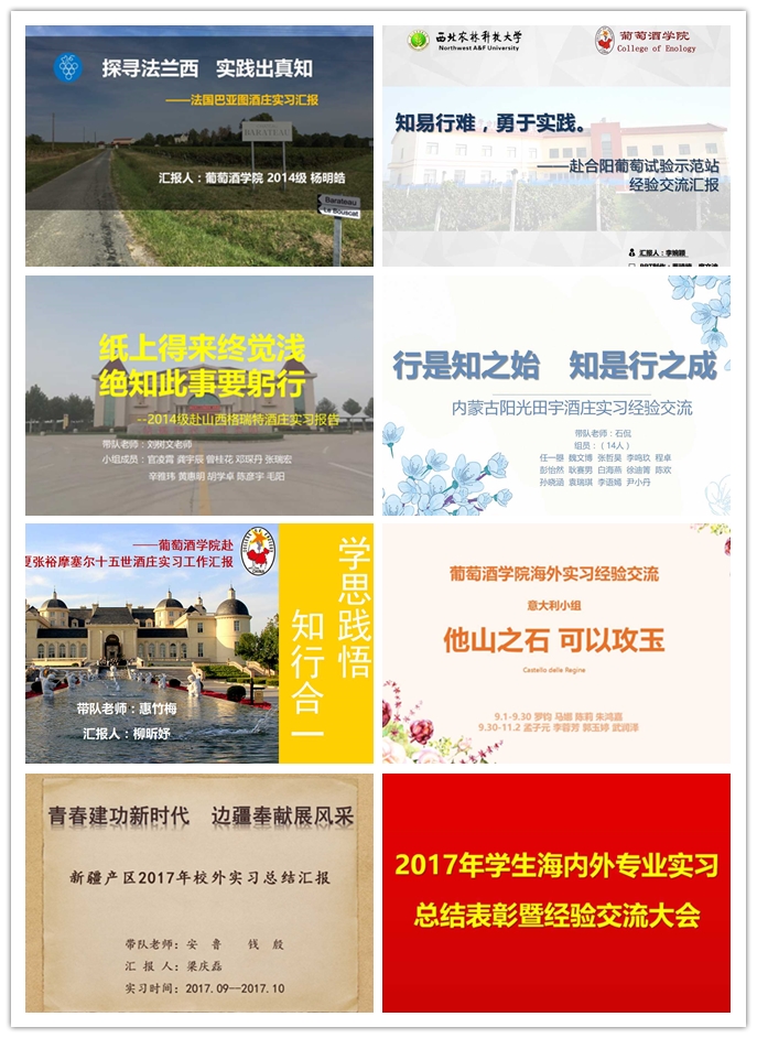 以学生为中心构建了覆盖“从土地到餐桌”所有环节的实践教学运行体系,在国内外建立40余个教学实践基地,全面支撑了具有国际就业能力培养的人才发展模式。2017年共有130名学生参加海内外专业实习,其中22人赴海外实习创历史新高,学生足迹遍布国内外主要葡萄酒产区,包括法国、意大利以及新疆、内蒙古、宁夏、山西、北京五省。