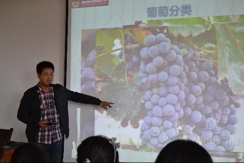 合阳葡萄试验示范站驻站专家张鹏围绕葡萄与葡萄酒有关的科普性知识为同学们做了一场生动易懂的报告,在报告会上,同学们对葡萄的分类、葡萄酒的酿造过程以及葡萄酒化验仪器等有关问题有了初步的认识,对葡萄酒表现出浓厚的兴趣,并希望以后能在欧美激情