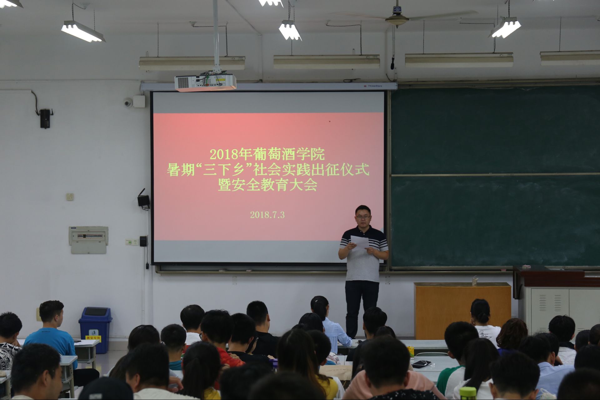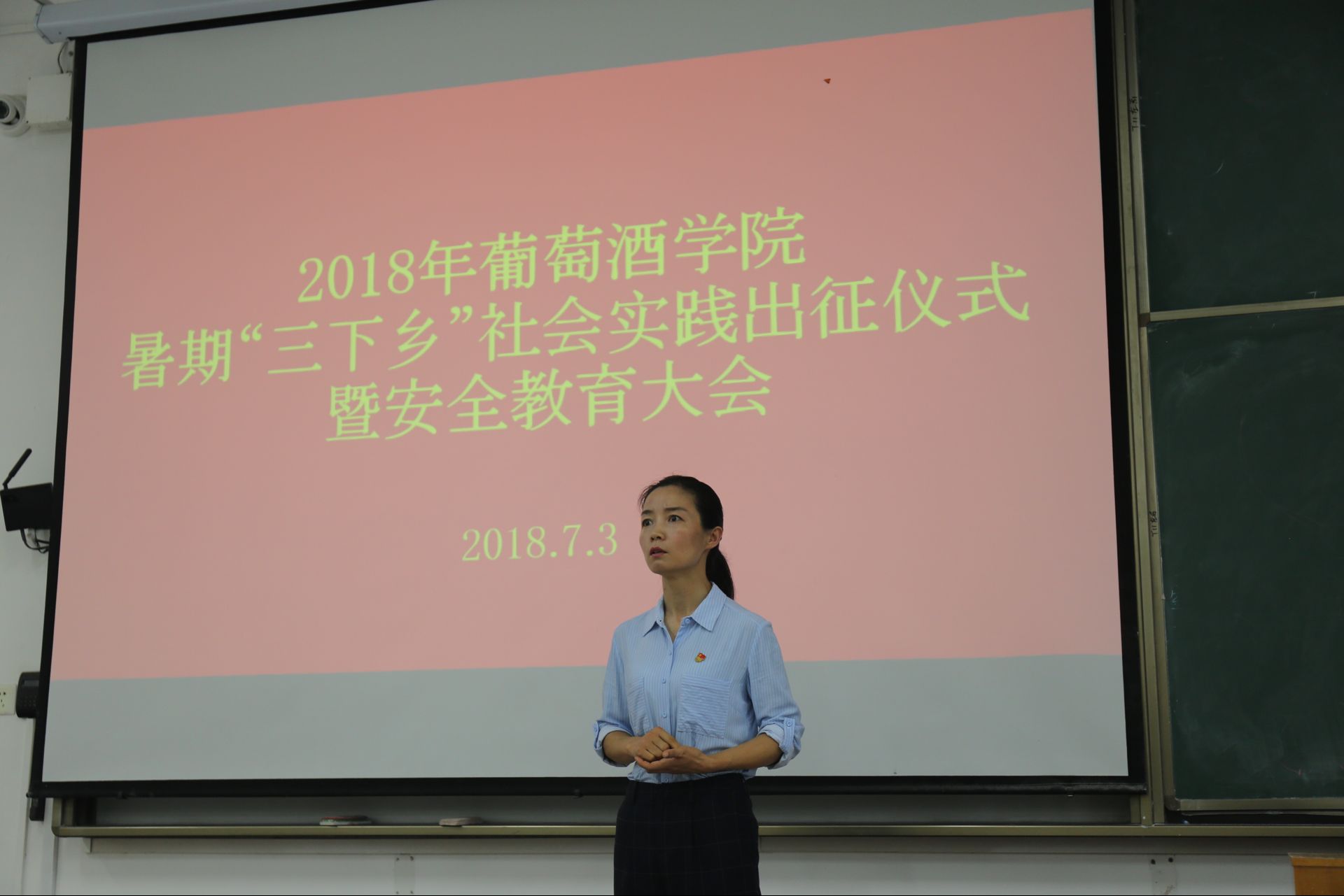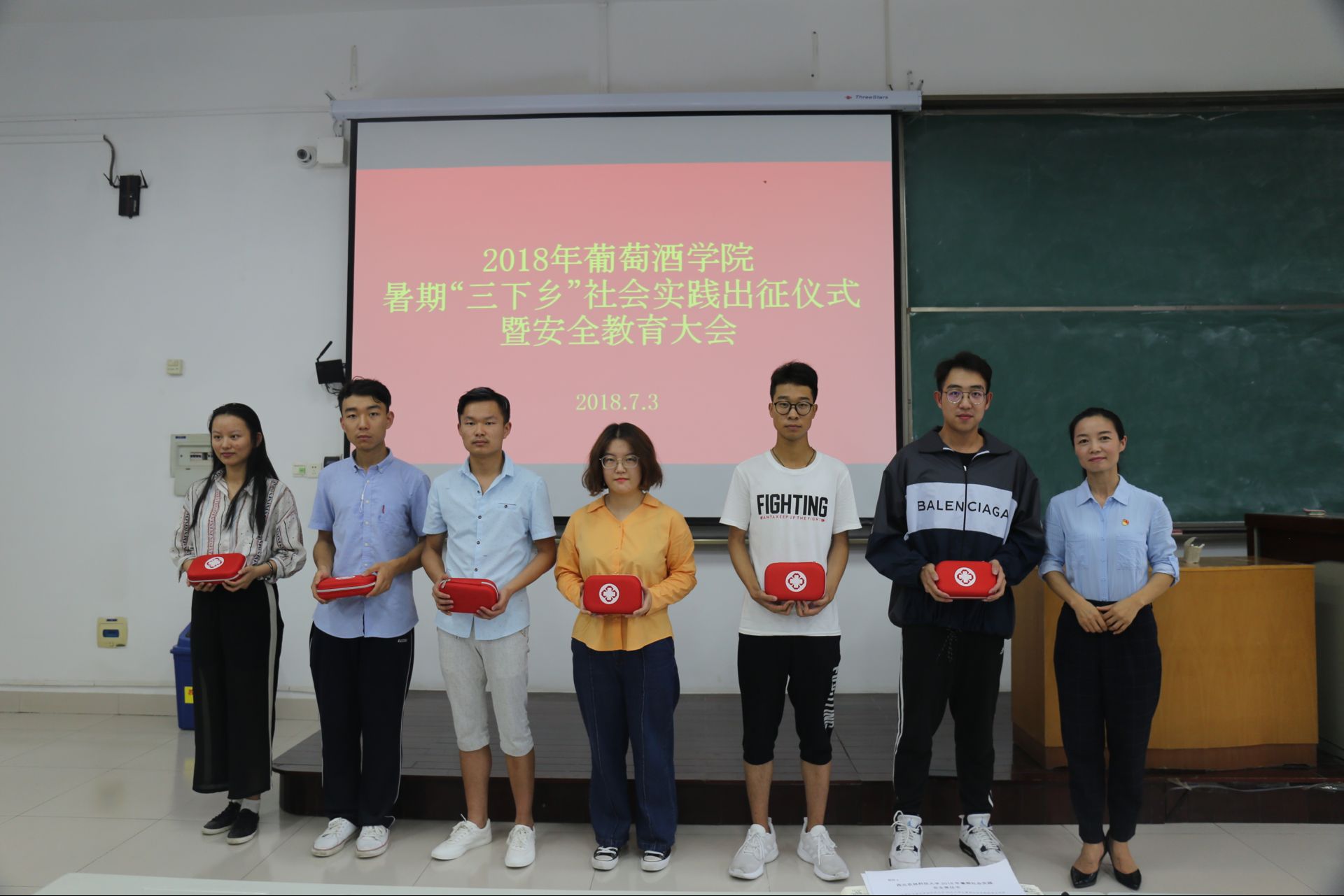 党委副书记邓亚丽老师贴心地为各队伍发放了医疗包后,对暑期社会实践工作提出四点要求,一是全面认识社会实践的重要意义。社会实践是了解社会、认识社会的重要途径,是专业学习和实践教育的重要组成部分,作为对实践能力有较高要求的葡萄与葡萄酒工程专业的学生,应抓住一切机会积极投身实践锻炼,通过实践了解社会、认识专业、成长自我。二是做足行前“功课”,提高实践项目执行能力。每支队伍在出发前结合各自实践目的和要求,按照“科学谋划、目标管理、信息在线、过程控制”的原则,细致做好资料查阅、人员分工、路线攻略、经费预算等工作,确保欧美激情