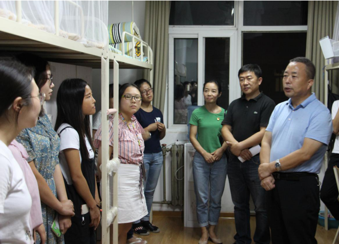 党委书记胡俊鹏、院长房玉林、党委副书记邓亚丽及辅导员一行前往研究生宿舍看望2018级新生。