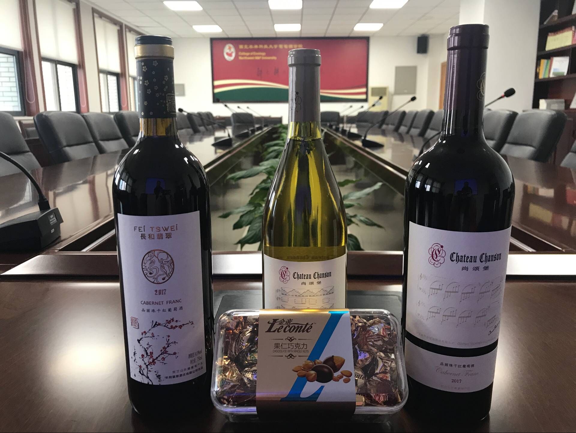 事业发展,感恩老师们教育之情,至此中秋佳节来临之际,98级校友郭明浩为老师们送上了宁夏尚颂堡酒庄、宁夏长和翡翠酒庄的葡萄美酒,03级校友闫峰瑞为老师们送上了陕西桥畔庄园的葡萄美酒,07级校友王振伟为老师们送上了美味巧克力。