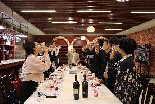 的省级葡萄与葡萄酒工程实验教学示范中心,针对理化检测分析平台、酿造车间、中小式车间等特色向他们进行了详细的介绍,说明了葡萄酒酿造的基本过程。在地下酒窖,陶永胜向培训班学员们介绍了酒窖的基本功能,之后从外观、香气、口感三个方面入手,介绍了葡萄酒的感官质量,并带领学员们按照看、闻、尝的步骤逐一品尝了三款葡萄酒。培训班学员们对葡萄酒专业表示现出极大的兴趣,纷纷表示受益匪浅。
