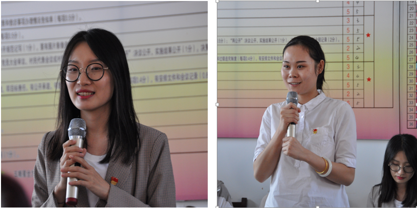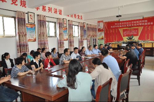 在自由交流环节,葡萄学党支部从学习葡萄生产技术、提升葡萄商用品质以及增加葡萄经济效益等方面提出了一些建议;葡萄酒学党支部从延伸红提葡萄产业链,开展校地合作以及帮助研发适宜红提葡萄深加工产品等方面提出了一些想法;化学工程市场党支部从鲜食葡萄白兰地生产、鲜食葡萄市场营销等方面提供了一些思路;曾在坊镇中心小学有过一年支教经历的研究生党员尹荐表示:作为在党组织的关怀和坊镇这片热土的关爱下成长起来的一名党员,对坊镇有这深厚的感情,通过支教期间和红提种植户的沟通,普遍发现种植户存在缺乏技术以及技术的引领帮扶等问题,为了助力合阳农民脱贫致富,走向乡村振兴,要把农民实际需要和欧美激情