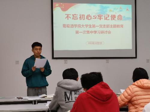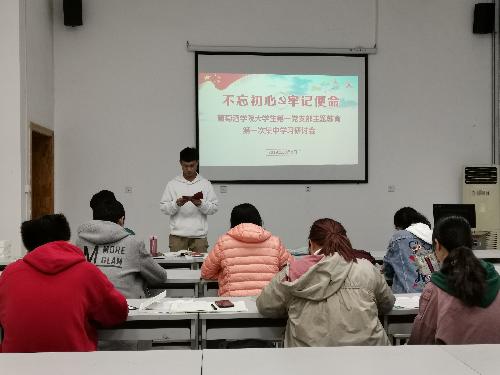 开展“不忘初心、牢记使命”主题教育工作计划》,全体党员集体学习了党章的基本内容、习近平总书记在庆祝新中国成立70周年大会的讲话、《习近平关于不忘初心、牢记使命论述摘编》中第一篇、习近平总书记在全国教育大会上的重要讲话精神。薛雪强调,在主题教育期间,支部党员同志要明晰党员义务与党员权利,重点查找自身在“党员意识”、“担当作为”、“服务群众”、“遵守纪律”和“作用发挥”五个方面的差距与不足,查出问题并解决问题。