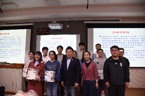 院长房玉林教授在8T03教室为2019级本硕新生上了一堂生动的专业思想教育课,党委副书记邓亚丽主持。