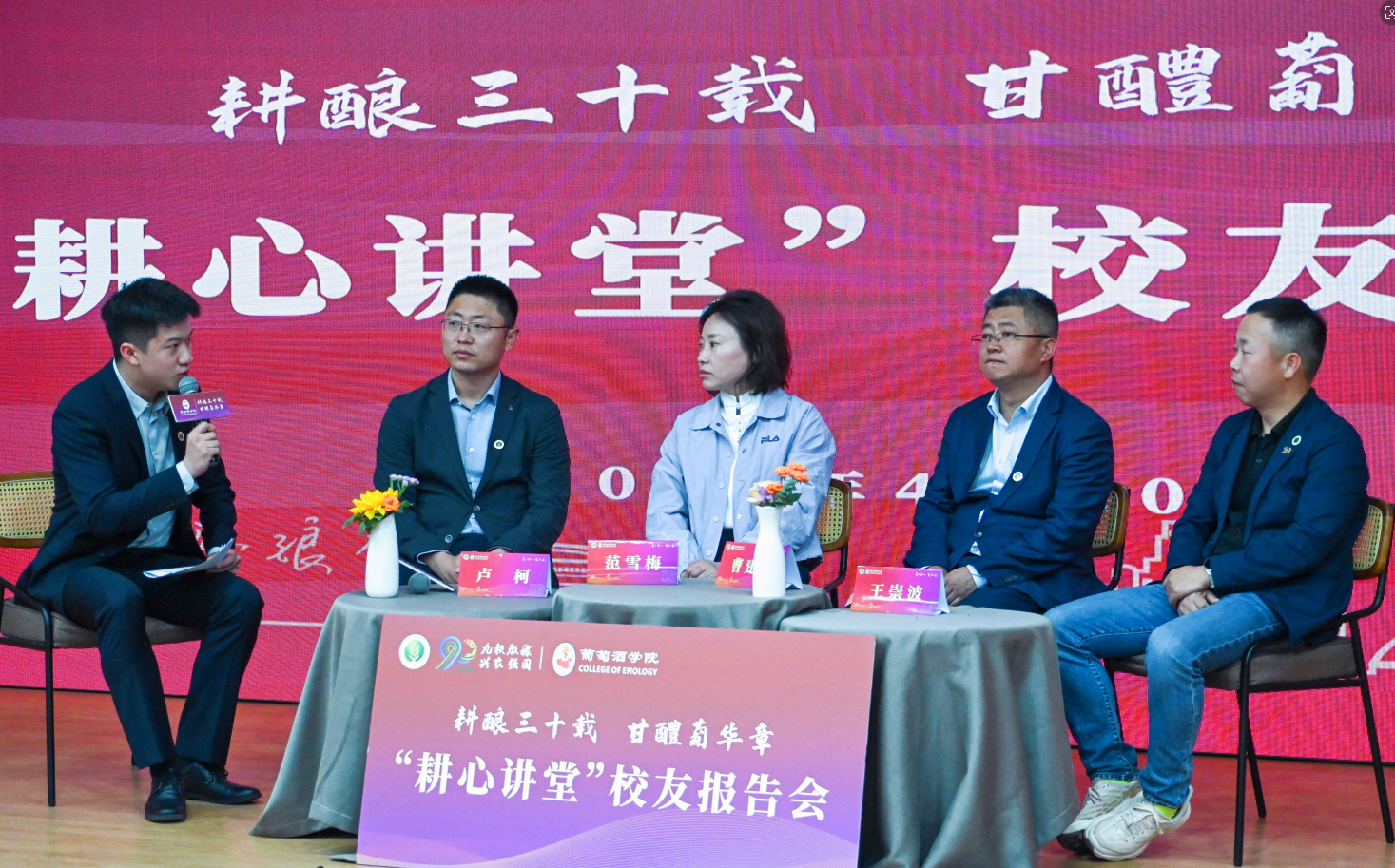 邀请95级校友、贵州茅台酒厂(集团)昌黎葡萄酒业有限公司党委副书记、总经理、总工程师、首席质量官范雪梅、98级校友香格里拉酒业股份有限公司副总经理曹建宏、2007级校友甘肃省葡萄酒产业协会常务副会长兼秘书长卢柯、2001级校友壹酒(杭州)贸易有限公司创始人王崇波与200余名学子分享经验、答疑解惑、对话成长。欧美激情