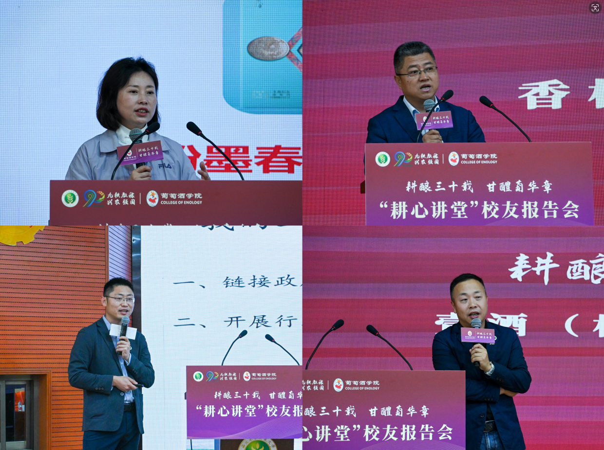 2021级本科生孙鲁星表示:“听完报告会,我深深被4位校友的故事鼓舞和震撼,我将以校友为榜样,认真学习知识,刻苦钻研科技创新,为中国葡萄酒的发展留下属于自己的青春奋斗印记。”2022级研究生李坤一表示:“与校友们的交流让我更深入地了解葡萄酒行业的新问题、新技术、新业态、新发展,为未来投身葡萄酒行业事业拓宽了视野、明晰了思路。”